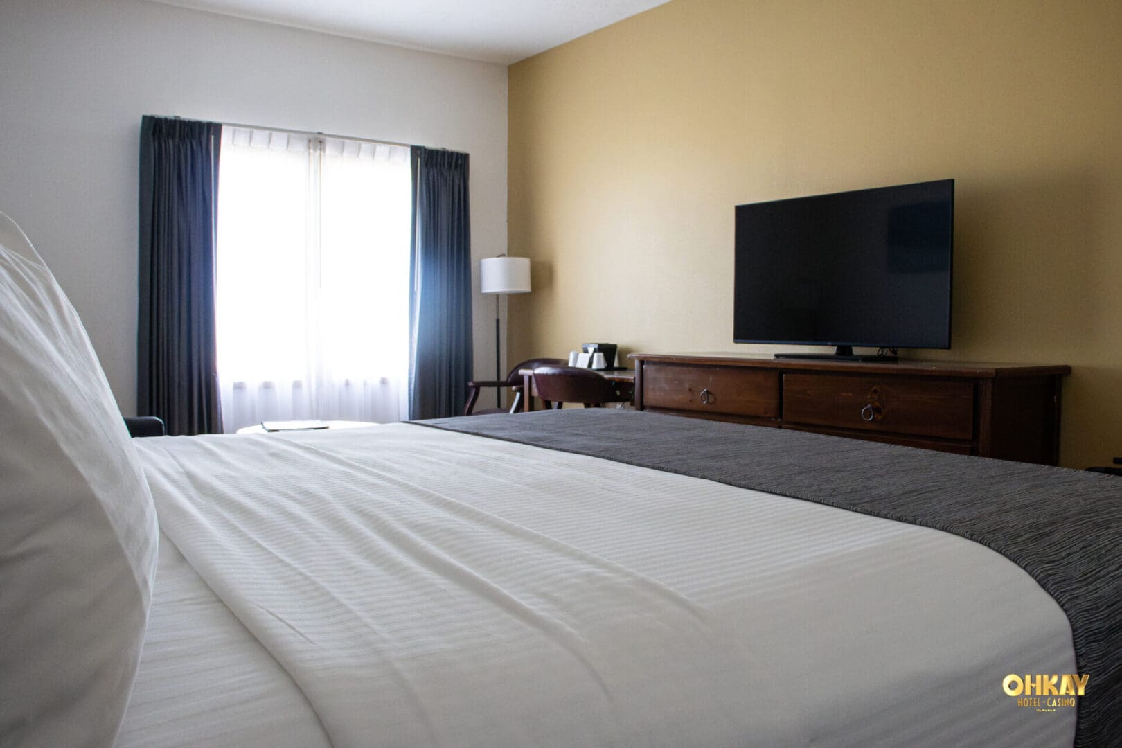 Now 100% Non-Smoking! Our friendly hotel staff work hard to ensure you have a comfortable and memorable stay. Our goal is to see that our guests enjoy their gaming and lodging experience at the Ohkay Hotel Casino. We also offer three dining outlets including the Harvest Cafe, The Coyote Cantina and The Coffee Spot – proudly serving Starbucks and Fresh Homemade pastries.